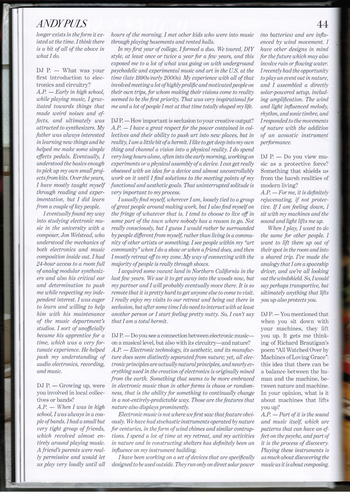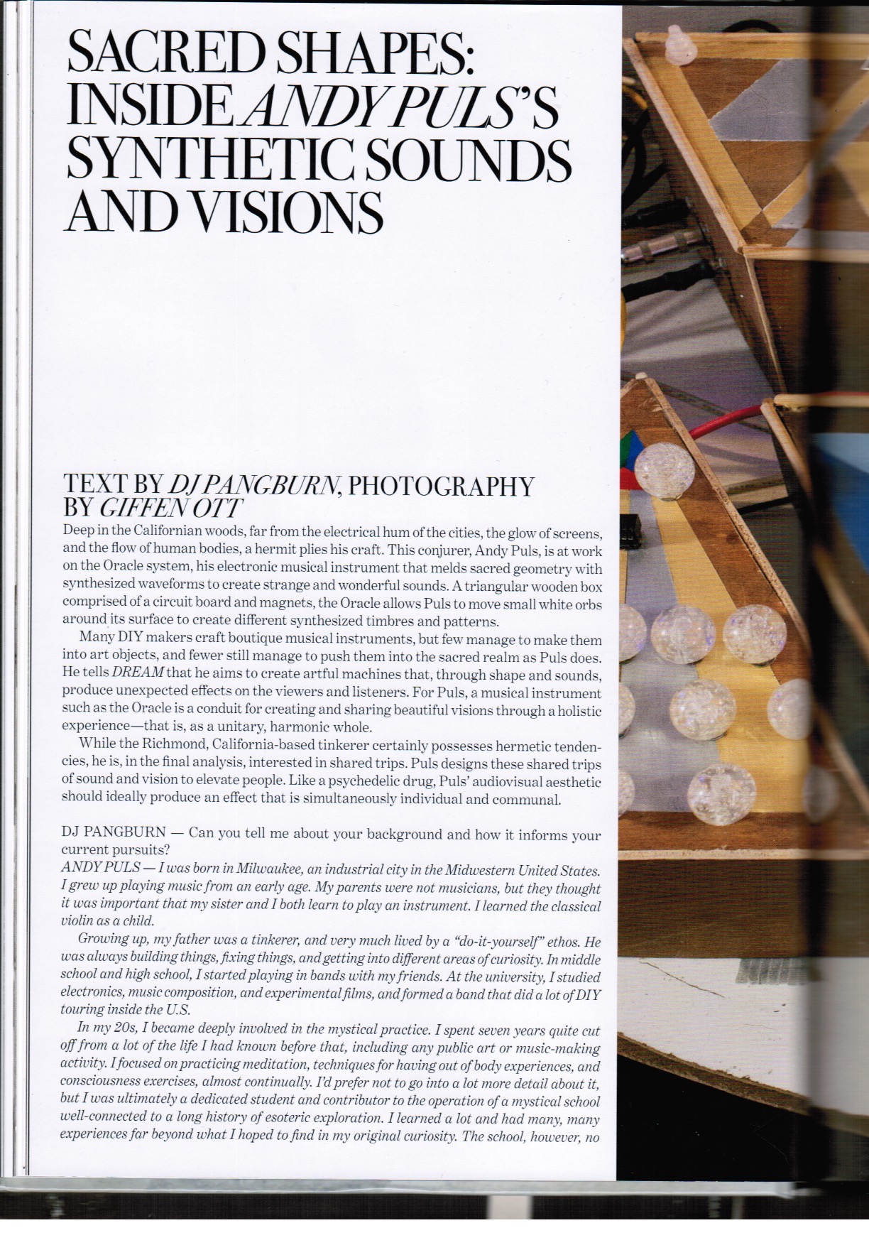 Interview in DREAM magazine, fall 2018 issue.
